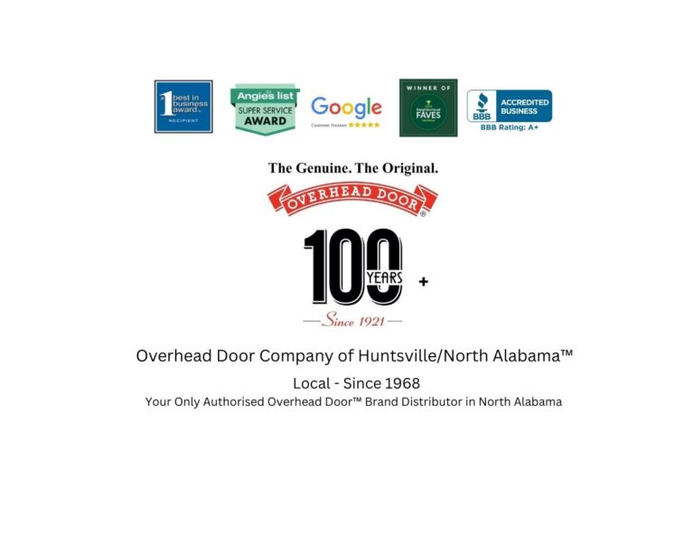 Voted North Alabama’s #1 Best in Business Award Recipient in the Garage Door Service and Sales category, 2019-2024! We appreciate our continued repeat customers and all the new customers we add each day. Thanks for making us your number one choice for over 55+ years. Locally owned and operated by the Warren Family since 2004. As the only local authorized Overhead Door Company™ in North Alabama, we offer only the best garage door repair and service with the products you want and the safety you need.